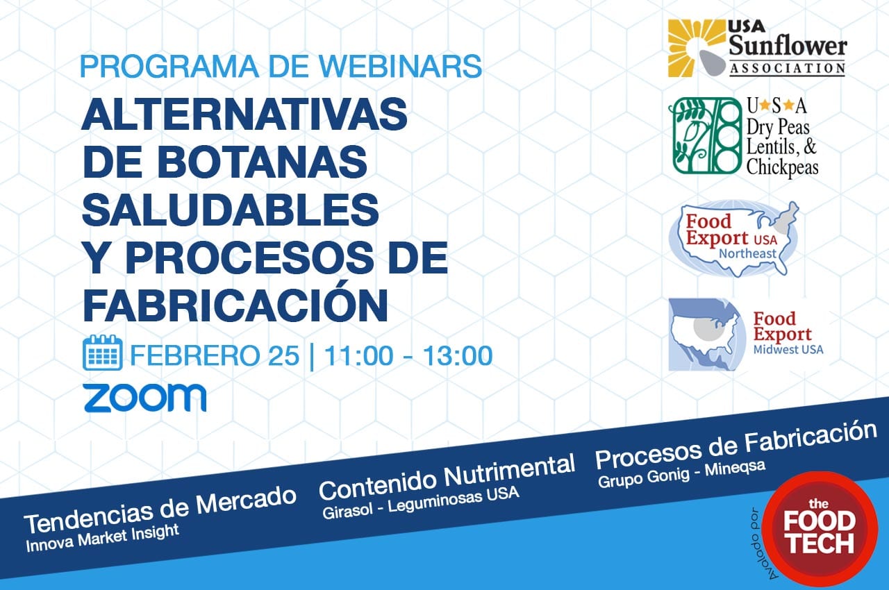 La Asociación Americana de la Semilla de Girasol, el Consejo Americano de la Arveja, Lenteja y Garbanzo, y Food Export Association Midwest y Northeast, presentarán un breve programa de webinars “Alternativas de Botanas Saludables y Procesos de Fabricación” con la participación de Innova Market Insight, Grupo Gonig y Mineqsa.