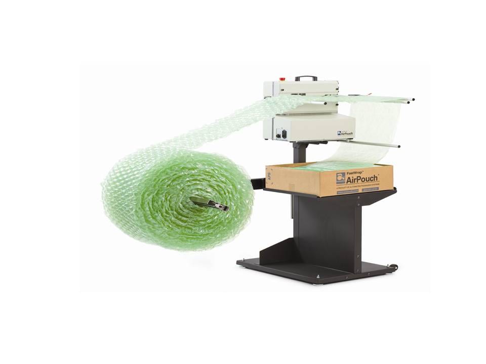 Un sistema de embalaje de protección que infla y produce materiales de embalaje a aproximadamente 20 metros por minuto con burbujas a pedido.Automated