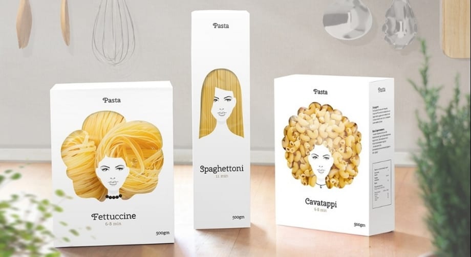 En las cajas se han reproducido las caras de mujeres con pelo diferente.Internacional.- El diseñador ruso Nikita desarrolló un envase de fideos bastante
