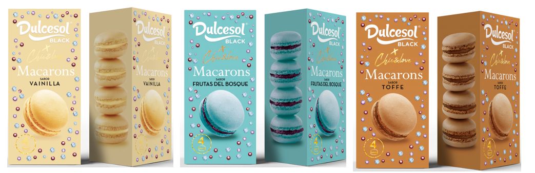 Dulcesol, la marca del grupo Vicky Foods, amplía la colección de macarons de su línea premium “Dulcesol Black” en un formato de cuatro unidades.