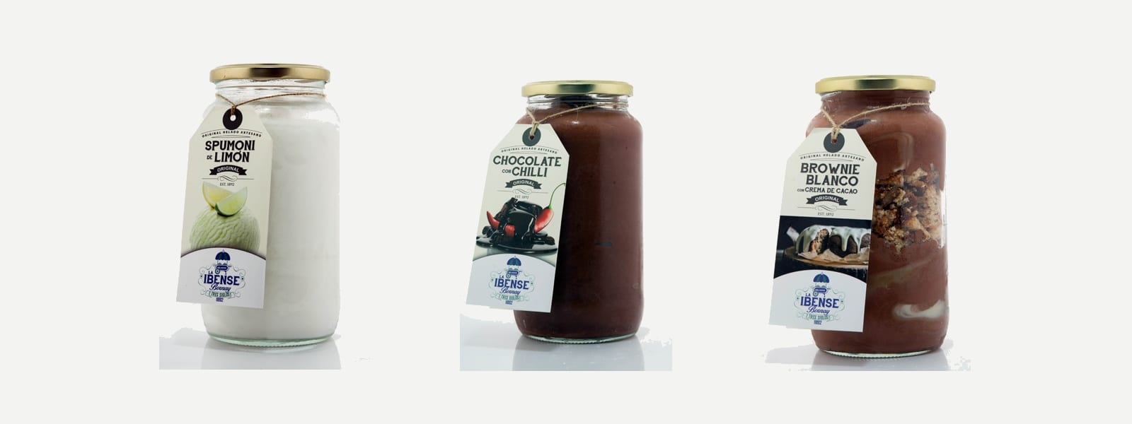 Ibense Bornay presenta en originales frascos de cristal reutilizables tres variedades del lácteo.España.- La heladería más antigua de España, Ibense