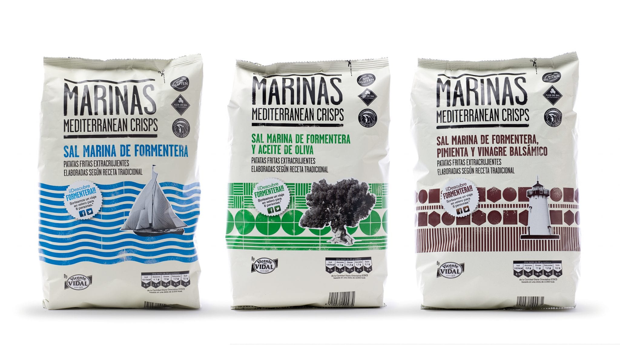 Cuenta con tres diseños inspirados en el Mediterráneo.Internacional.- Marinas Mediterranean Crisps, la marca de patatas fritas de Vicente Vidal inspirada